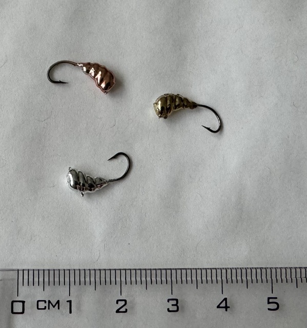 Levná olověná marmyška. Hmotnost přibližně 1 gram.