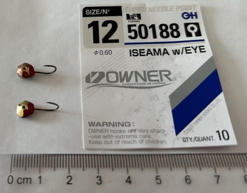 Ručně vyráběná marmyška na háčku značky Owner. Hmotnost přibližně 1g.