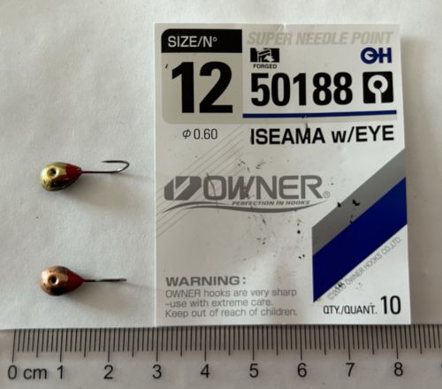 Ručně vyráběná marmyška na háčku značky Owner. Hmotnost přibližně 1g.