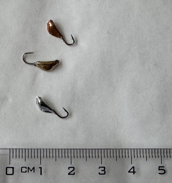 Levná olověná marmyška. Hmotnost přibližně 0,6 gramu.
