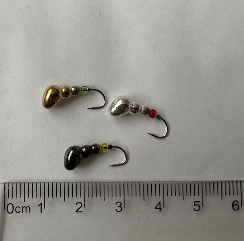 Kvalitní wolframová marmyška, hmotnost přibližně 1,6 gramu.