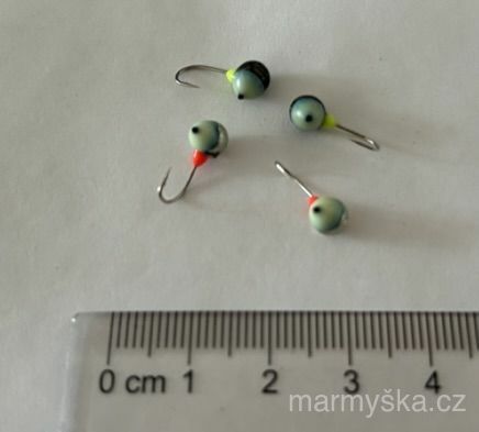 Kvalitní wolframová marmyška s korálkem, hmotnost přibližně 1,6 gramu.