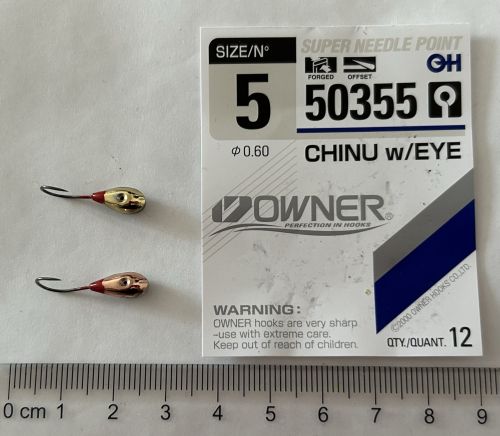 Ručně vyráběná marmyška na háčku značky Owner. Hmotnost přibližně 0,5g.