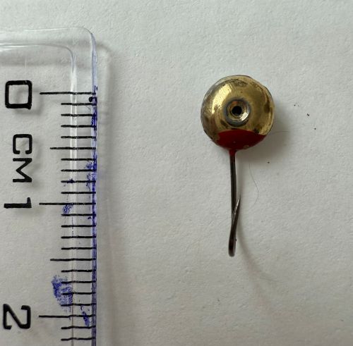 Ručně vyráběná marmyška na háčku značky Owner. Hmotnost přibližně 1g.