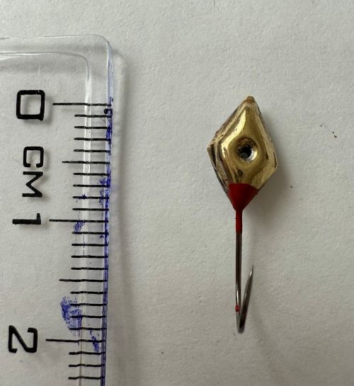 Ručně vyráběná marmyška na háčku značky Owner. Hmotnost přibližně 0,5g.