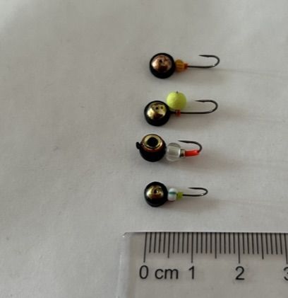 Kvalitní wolframová marmyška s korálkem, hmotnost přibližně 1,6 gramu.