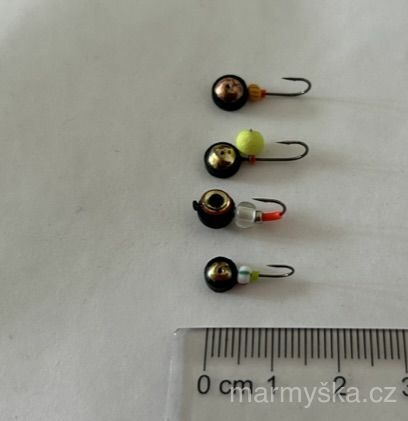 Kvalitní wolframová marmyška s korálkem, hmotnost přibližně 1,6 gramu.