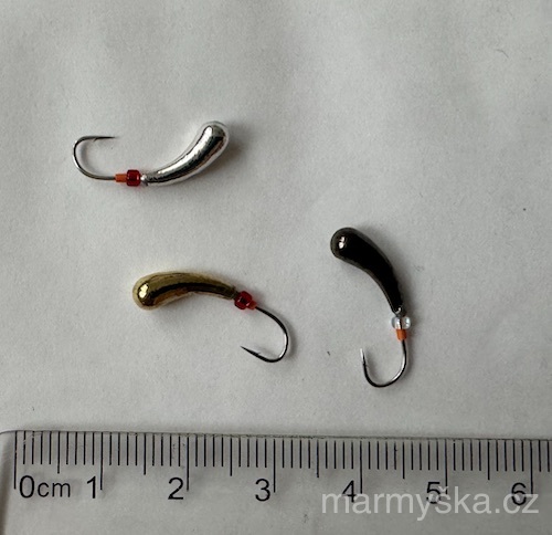Kvalitní wolframová marmyška, hmotnost přibližně 1,5 gramu.